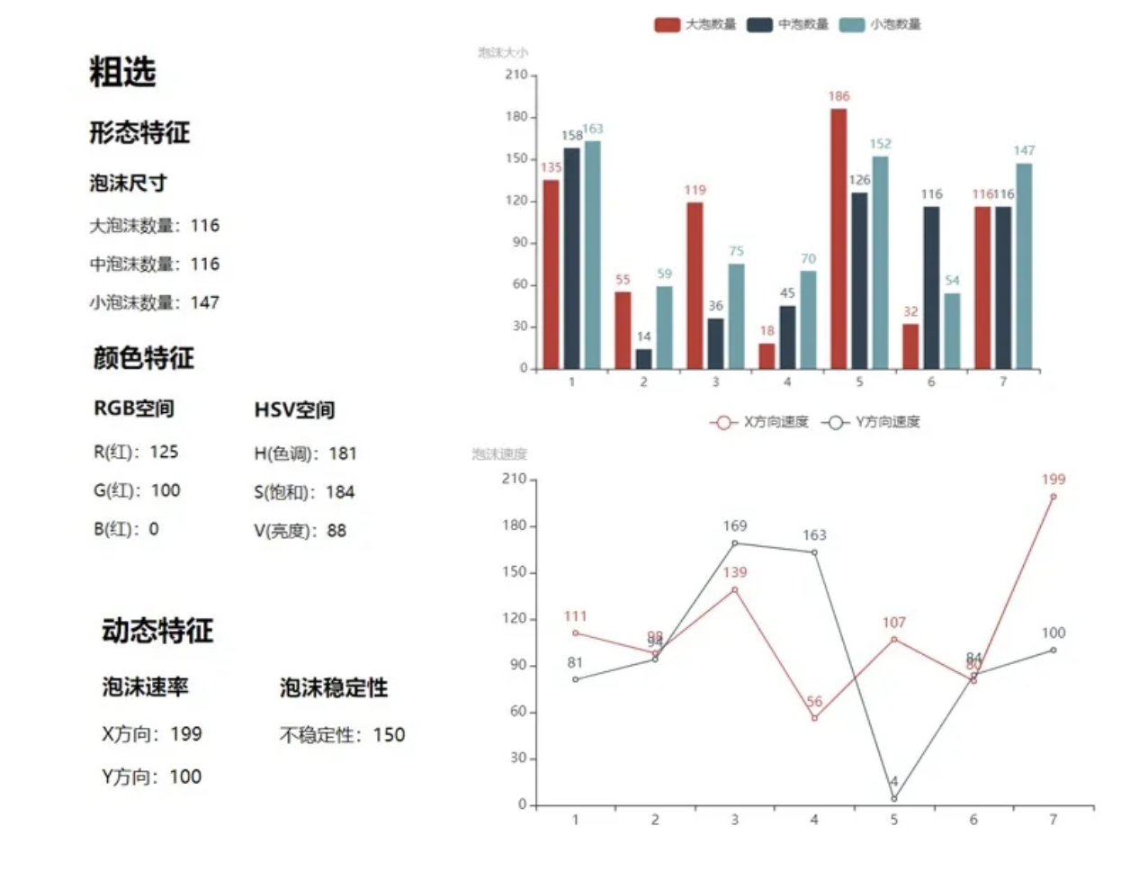觀察浮選泡沫對于浮選操作人員來說是一項重要技能,需根據(jù)浮選泡沫的表觀現(xiàn)象判斷造成變化的原因,從而及時調(diào)整浮選藥劑添加量、充氣量和泡沫層厚度等,以保證浮選生產(chǎn)流程的正常運行。其中,泡沫的形態(tài)特征、顏色特征、動態(tài)特征三個方面能夠全面的反映泡沫情況即浮選生產(chǎn)狀況,因此對這三方面的檢測并且量化對浮選生產(chǎn)的控制至關(guān)重要。